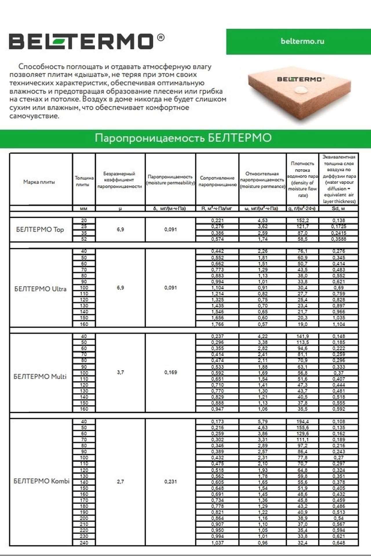 Номинальное термическое сопротивление Rd [м²К/Вт] 01.03